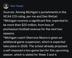 These measures are among the most severe imposed on a Division I football program in recent years. The NCAA cited Michigan State’s failure to fully cooperate during the investigation and the lack of adequate internal controls as aggravating factors.