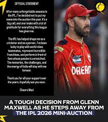 Maxwell’s decision to rule himself out of the 2026 IPL auction is a momentous one that will reverberate through the cricketing world. It underscores the physical and logistical demands placed on international cricketers who juggle domestic leagues and national teams. For the IPL, it signals a possible pivot toward a more dynamic and younger overseas player roster, offering fresh opportunities for emerging talents. As teams recalibrate their squads and the cricket calendar tightens, Maxwell’s next steps—whether a return to the IPL or a focus on the West Indies’ international agenda—will remain a key story for fans and analysts alike.