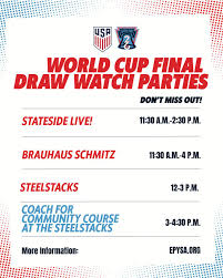 [ https://www.wfmz.com/news/area/lehighvalley/lehigh-county/bethlehem-area/fans-to-gather-at-steelstacks-in-bethlehem-for-watch-party-as-fifa-world-cup-draw/article_5fdd9607-af0f-4f80-b5b6-7150457fcf5c.html ]