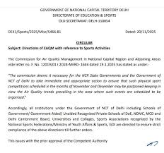[ https://www.thehansindia.com/news/national/caqm-seeks-strict-enforcement-of-sc-order-on-outdoor-sports-amid-poor-air-quality-1031054 ]