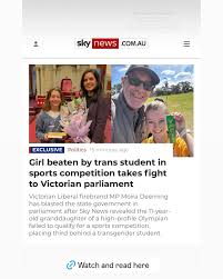 [ https://www.skynews.com.au/australia-news/politics/girl-beaten-by-trans-student-in-sports-competition-takes-fight-to-victorian-parliament-with-help-from-liberal-mp-moira-deeming/news-story/15b68bc39c7f2f682458620cc1bedc03 ]