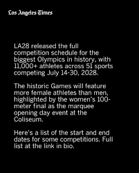 [ https://www.koaa.com/sports/olympics/olympic-organizers-unveil-competition-schedule-for-the-los-angeles-games ]